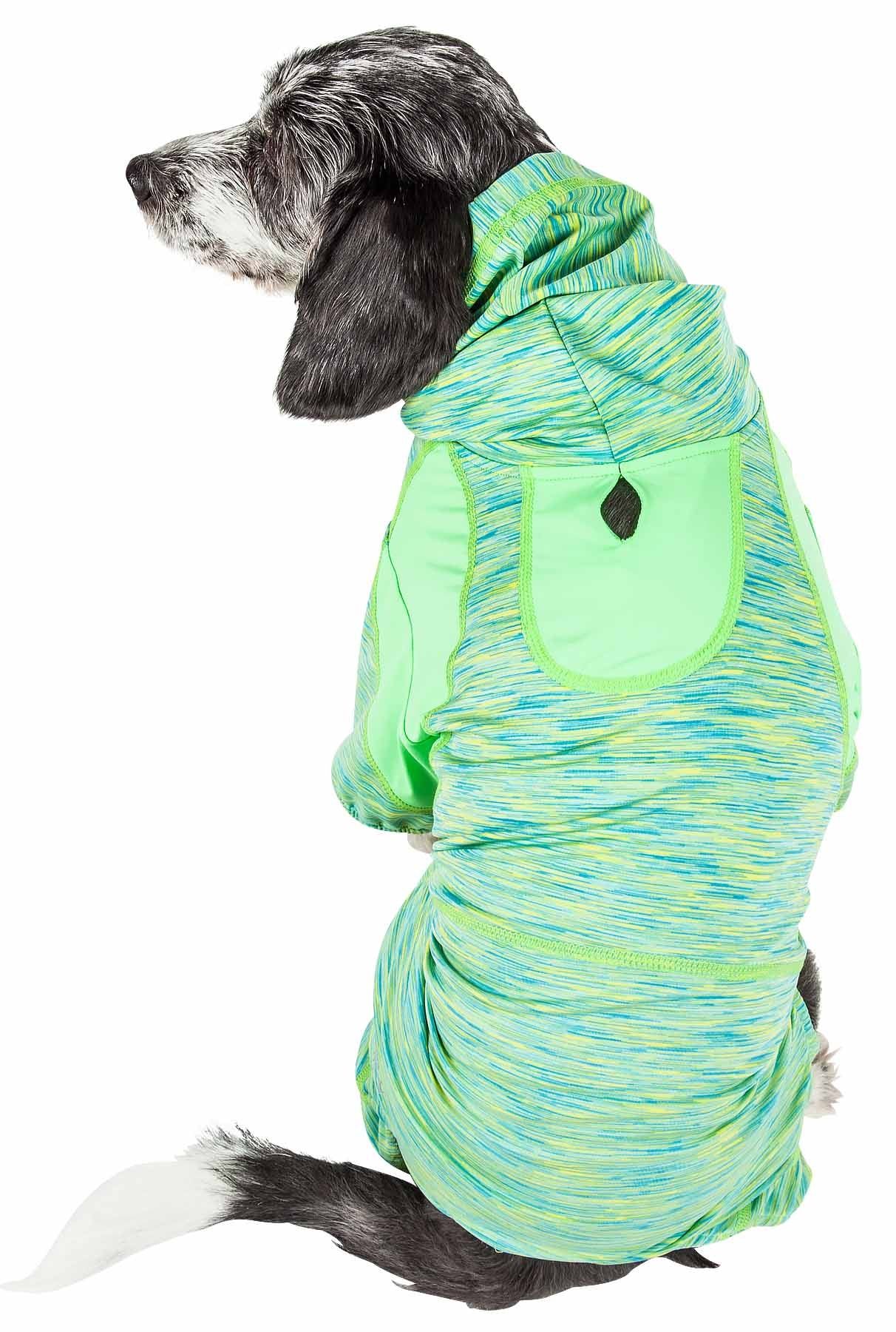 Pet Life Active 'Downward Dog' Heathered Performance 4-Way Stretch Two-Toned Full Body Warm Up Hoodie